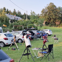 - Fernrohre dürfen aufgestellt werden: Am Parkplatz vor dem Gasthof (bevorzugt bei stärkerem Westwind), auf der Wiese vor und auf der Wiese links neben dem Gasthof. Auf beiden ist reichlich Platz vorhanden.
